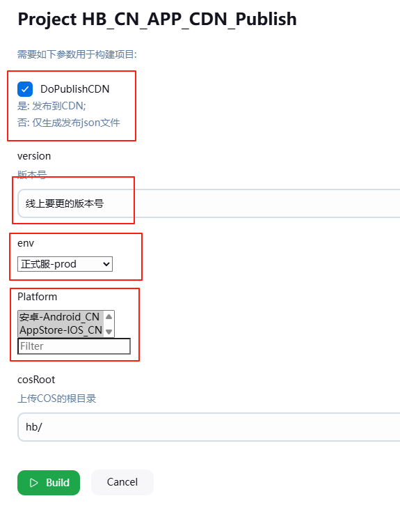 勾选DoPublishCDN,配置线上的版本号,选择正式服环境,然后框选2个渠道。